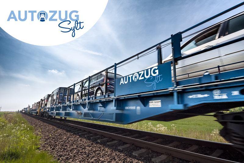 Mit dem blauen AUTOZUG-Sylt fahren Sie auf Flachwagen immer oben mit Rundblick auf das Wattenmeer.